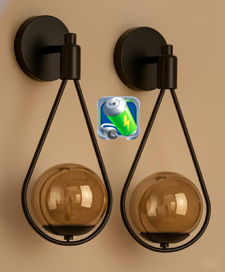 Şarj Et Kullan 2li Badem Siyah Kasa Bal Glop Camlı Şarjlı Pilli Aplik Metal Modern Aydınlatma