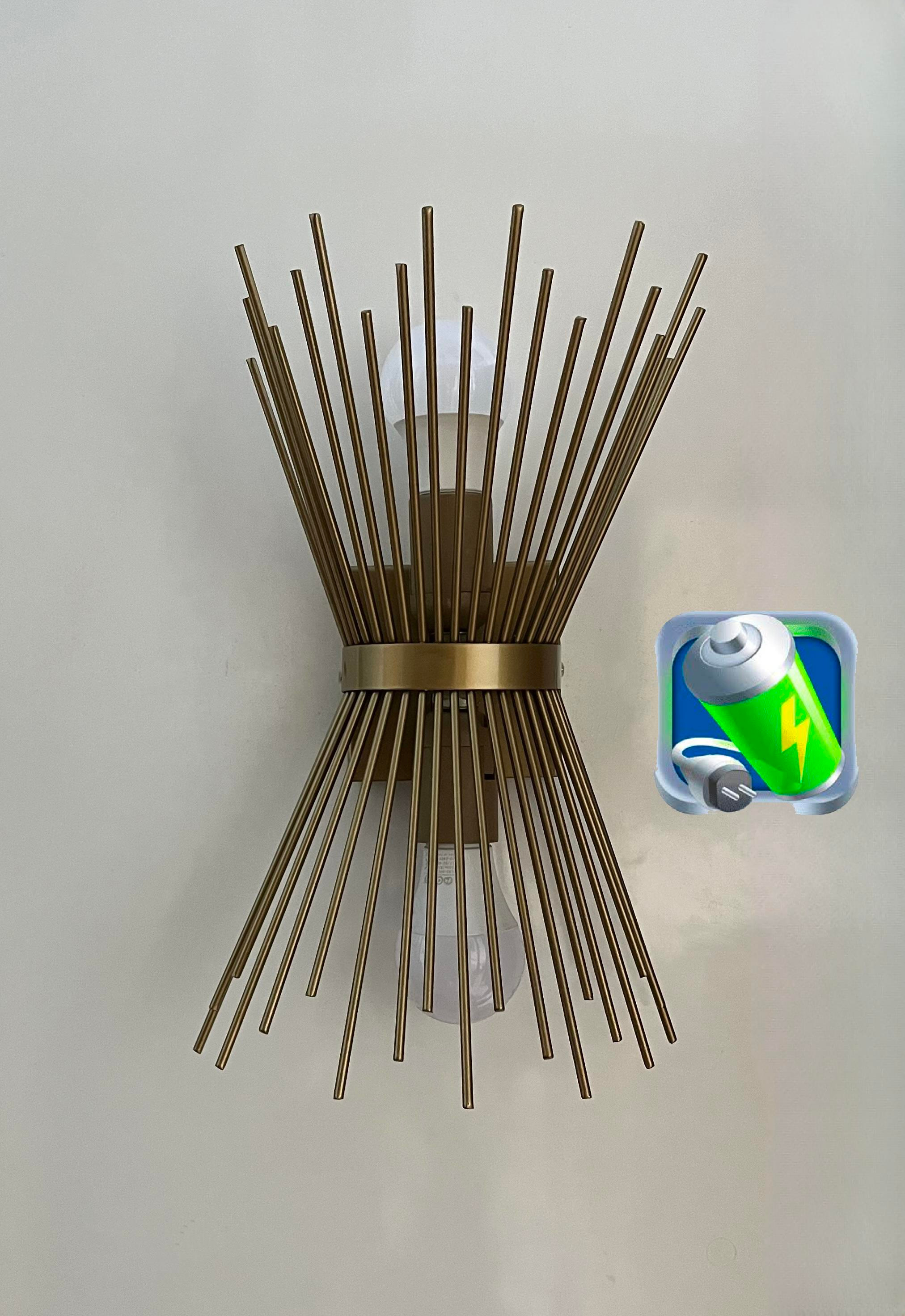 Şarj Et Kullan Eskitme Kirpi Şarjlı Pilli Aplik e27 Özel Tasarım Lamba Metal Modern - Tek AdetŞarjlı Pilli Aplik Pandora Büyük Boy Gold Kristal Taşlı Lüx Aplik