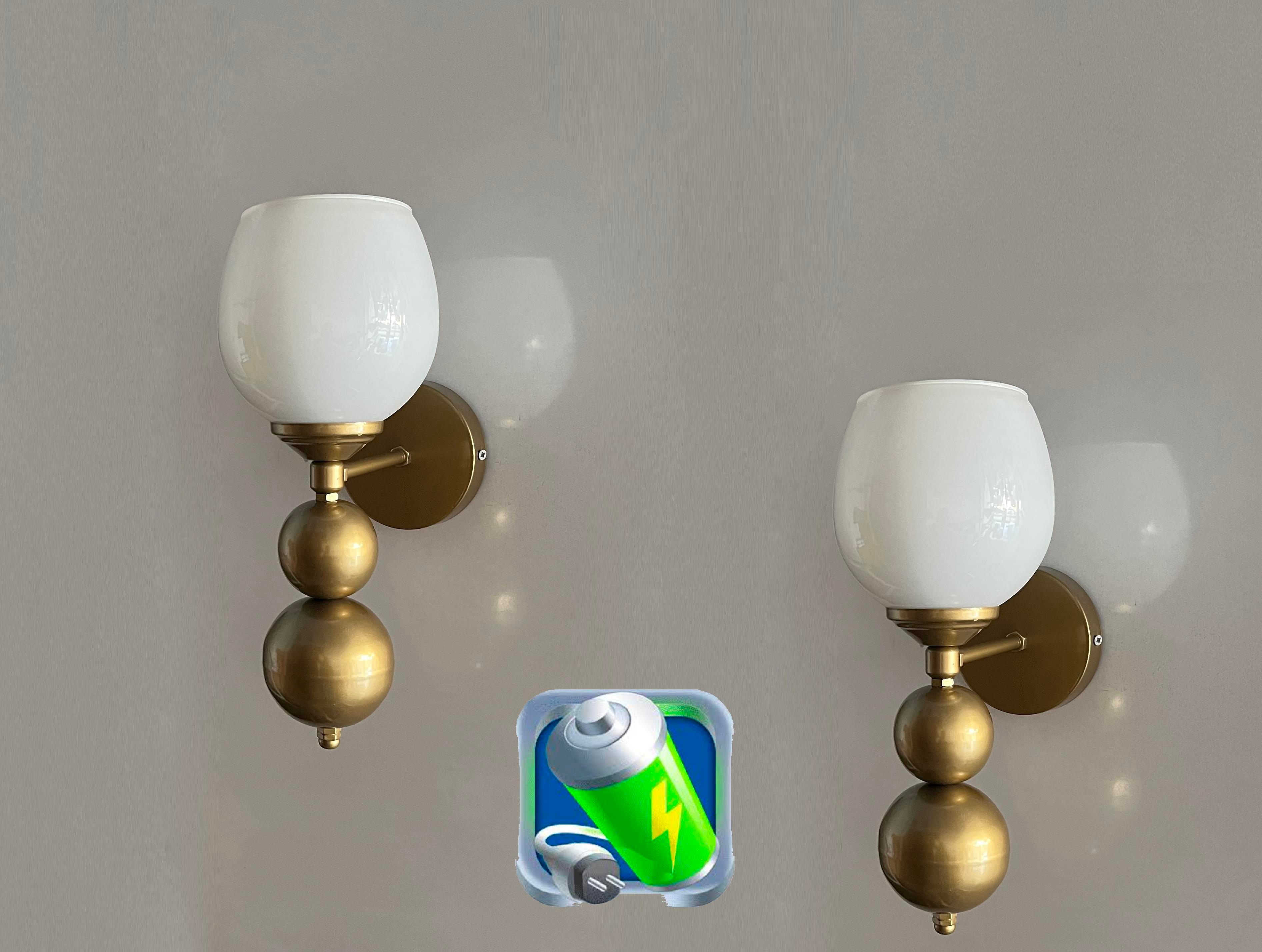 Şarj Et Kullan Eskitme Tokyo Şarjlı Pilli Aplik Beyaz Cam Metal Gövde Modern Duvar Aydınlatma -2 Adet
